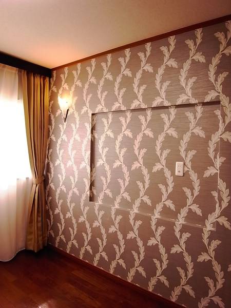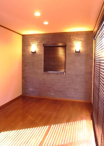 弊社がよくお薦めするプランなのですが、ベッドの足元の壁面にテレビを壁掛けするため、予めコンセント等を設置。(テレビはこれから・・のときでした)。アクセントクロスとブラケットライトをコーディネート。天井のシーリングライトを消して、寛ぎの時間をつくっていただくご提案です。