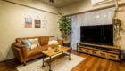 全体プランニング、家具のレイアウト提案、ソファ選定、ダイニングテーブル造作、ウィンドウトリートメント(カーテン)選定及び設置
